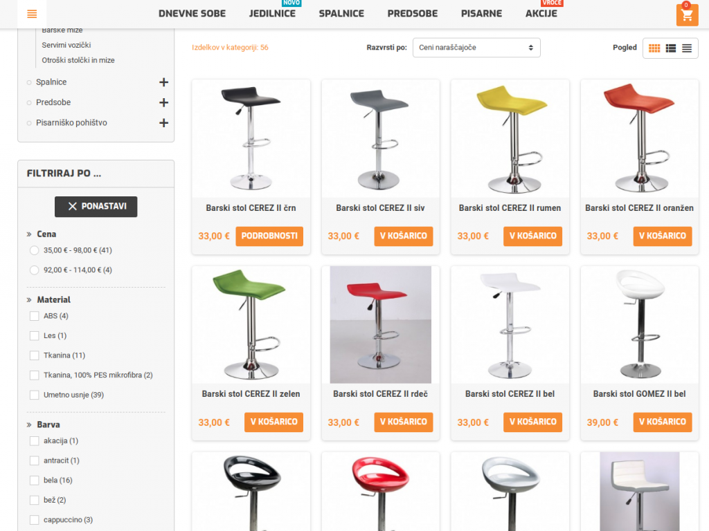 Zanimiv spletni prodajni lijak preko katerega se prodajajo barski stoli Pohistvo123.si